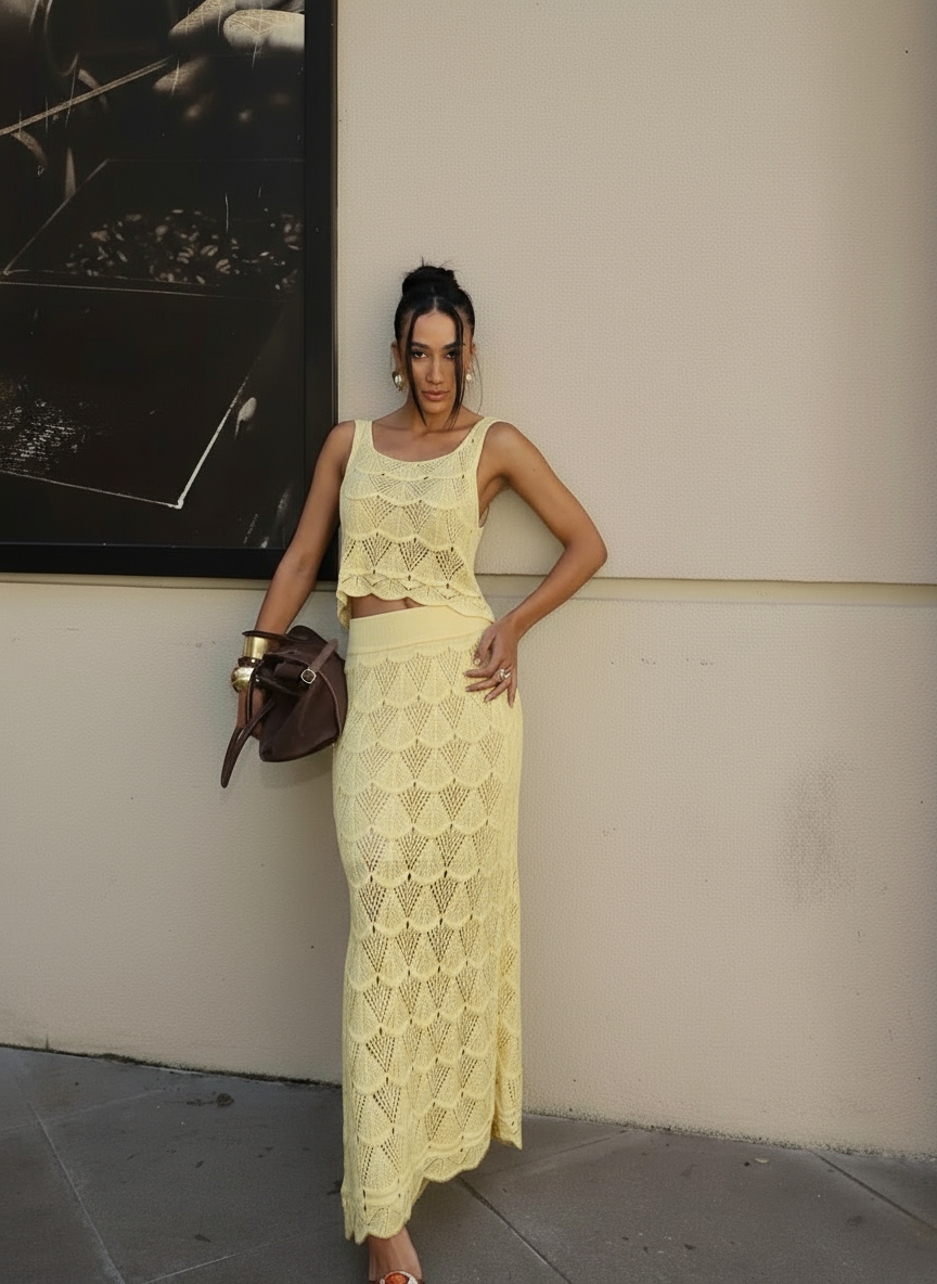 The SET LUANNA combines premium soft tricot fabric with exceptional stretch and recovery, making it an ideal choice for those seeking versatility without compromise. This expertly crafted piece adapts seamlessly from casual wear to layered styling, thanks to its superior elasticity and refined construction. The luxurious tricot material moves with your body while maintaining its shape, delivering comfort that lasts through all-day wear. Perfect for building a flexible wardrobe that transitions effortlessly across seasons and occasions.